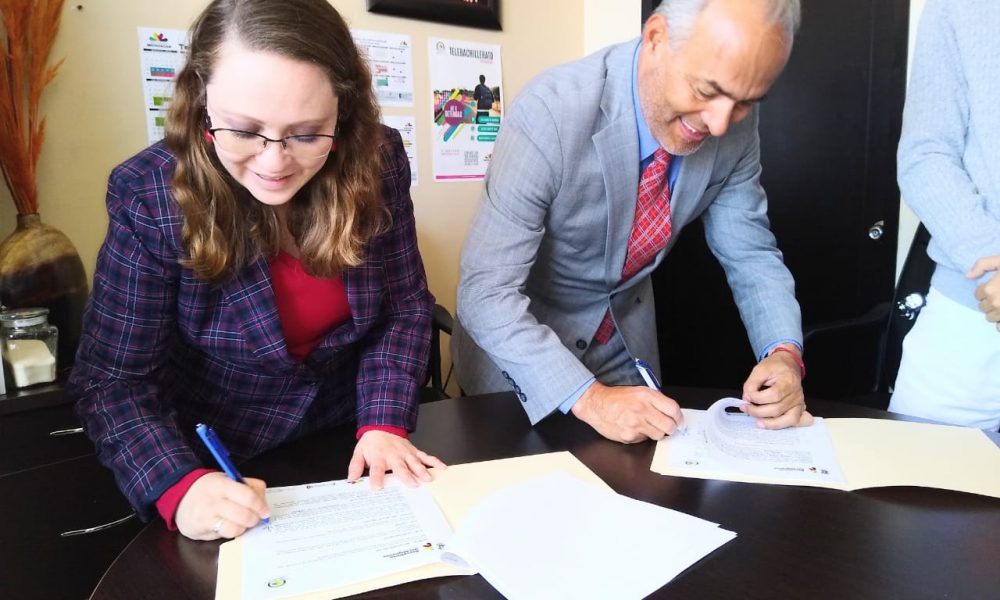 La firma fue encabezada por los titulares de la Semigrante, José Luís Gutiérrez Pérez y la directora de Telebachillerato de Michoacán (TEBAM), Cecilia Lazo de la Vega de Castro.