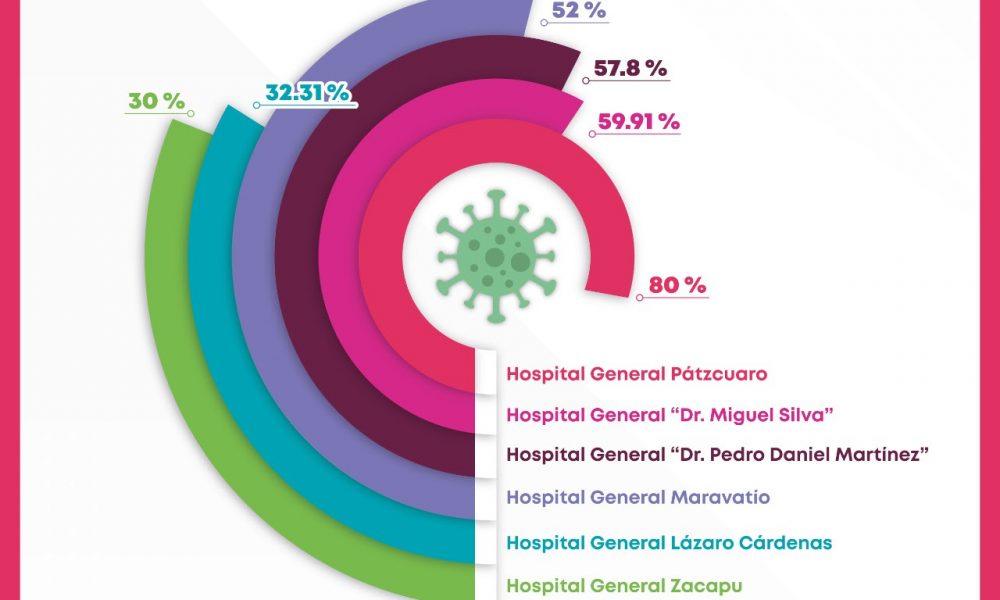 El reporte muestra que el Hospital General “Dr. Miguel Silva” se encuentra al 59.91 por ciento; el de Uruapan “Pedro Daniel Martínez”, al 57.8 por ciento; Maravatío, al 52 por ciento; Lázaro Cádenas, al 32.31 por ciento y Zacapu al 30 por ciento.