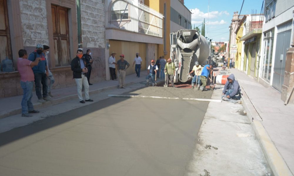 Tras iniciar el trabajo de colado de lozas en la calle Madero, ésta se encuentra en un 80% de proceso de pavimentación, así lo confirmó nuestro alcalde, Alex Espinoza, en un recorrido que realizó para revisar la obra.