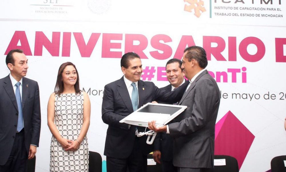 El mandatario, Silvano Aureoles, hizo entrega de equipo de capacitación al plantel Santa María en Morelia, así como de las primeras acreditaciones de competencia laboral a instructoras y personal del Icatmi.