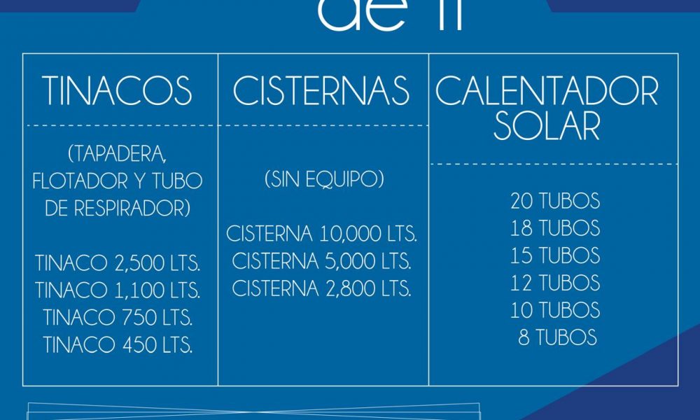 - La población puede adquirir tinacos, cisternas y termosolares