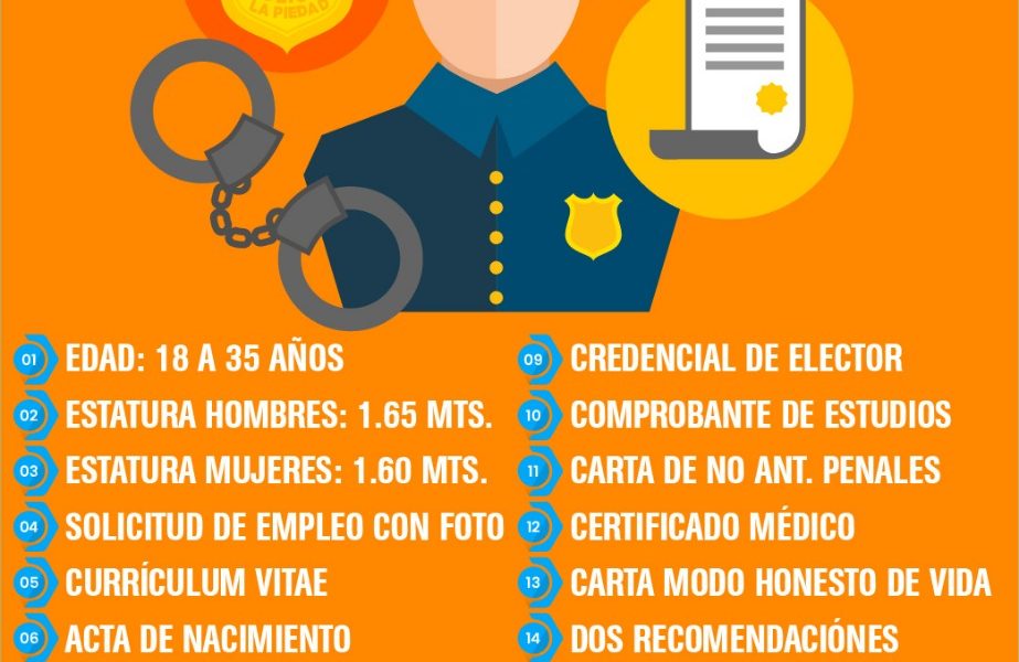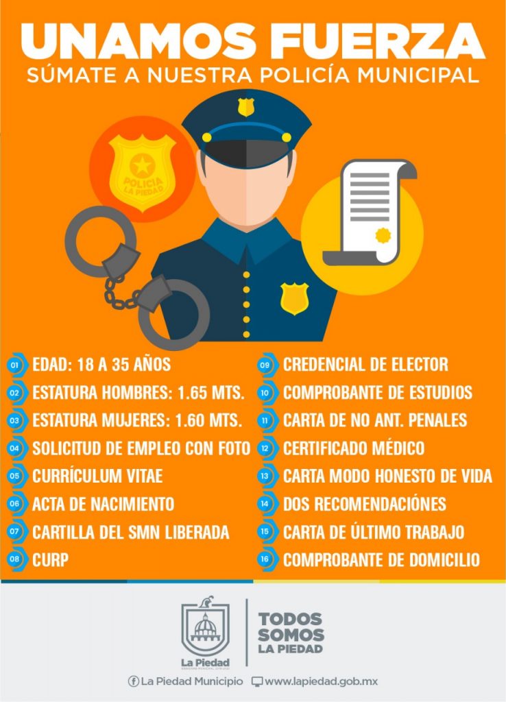 Los interesados en formar parte de la corporación policial deberán ser personas de entre 18 a 35 años; con una estatura en hombres de 1.65 metros y en mujeres de 1.60 metros.