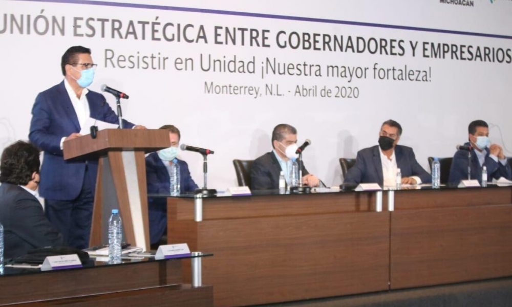 Monterrey, Nuevo León, a 24 de abril de 2020.- Al participar en la Reunión Estratégica de Gobernadores y empresarios del Noroeste del país, Silvano Aureoles Conejo urgió a la unidad y suma de esfuerzos para hacer frente a la actual emergencia sanitaria y a definir con urgencia un plan de reactivación económica ante el impacto, sin precedente en varias décadas, que la pandemia del COVID-19 dejará en este sector.