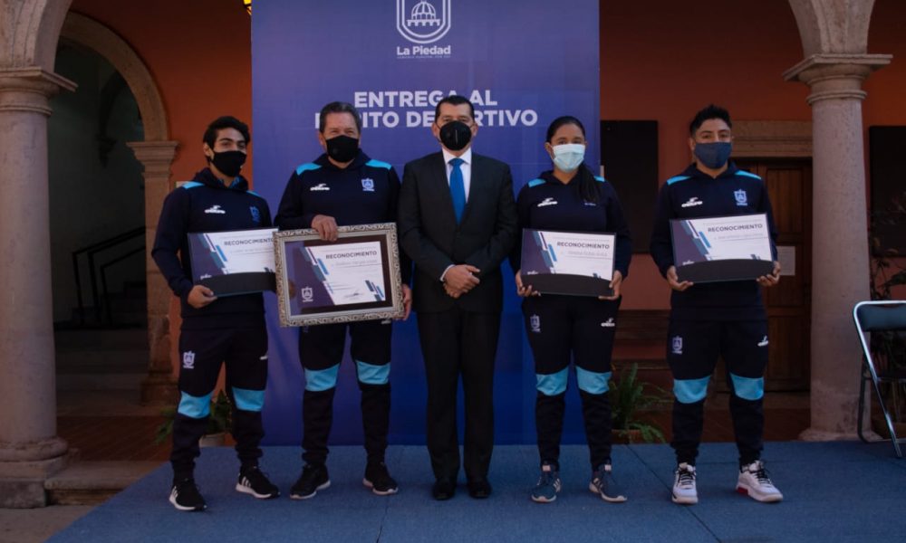 Autoridades municipales entregaron el Premio al “Mérito Deportivo” 2020, a Gustavo Vargas López apasionado del fútbol, actual director deportivo del equipo Reboceros de La Piedad; otorgaron a su vez tres reconocimientos más, uno para la tenista Jimena Rubio Ávila; el ciclista Leafar Israel Ruíz Canchola; en experto en Jiu Jutsui Jorge Antonio López Pérez y un Post Mortem al profesor, José Piedad Francisco Javier Ortiz Rojas.