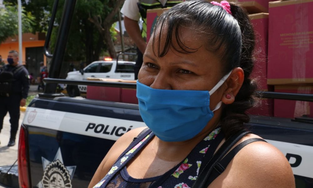«A veces no hay nada de trabajo por eso les agradecemos mucho por la gran ayuda que nos están dando», añadió tras agradecer al elemento de la Policía Michoacán quien le entregó en sus manos la caja con la despensa.
