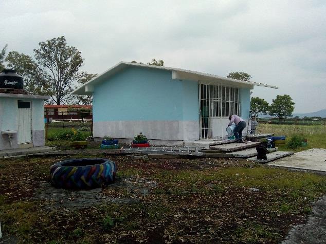 En el jardín de niños “José Vasconcelos” de la colonia Melchor Ocampo, se lleva a cabo la impermeabilización de losa y construcción de banquetas, así como la aplicación de pintura en el jardín de niños de Cujuarato, con un avance del 60%