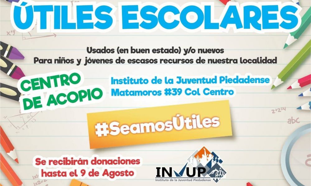 Favorable ha sido la participación de funcionarios públicos y sociedad civil en el reto “Seamos Útiles” que el Gobierno Municipal por medio del Instituto de la Juventud Piedadense (INJUP) impulsa con el objetivo de reunir material escolar y entregarlo a estudiantes que así lo requieran.