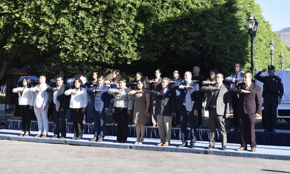 El presidente Municipal, Juan José García y miembros del Ayuntamiento, encabezaron la ceremonia cívica por el Día de la Bandera, en el la Plazoleta Miguel Hidalgo.