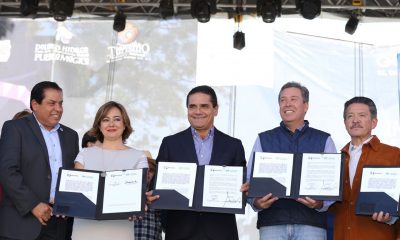Los Gobernadores de ambas entidades, Silvano Aureoles y Miguel Márquez, signan el convenio de hermanamiento en el...