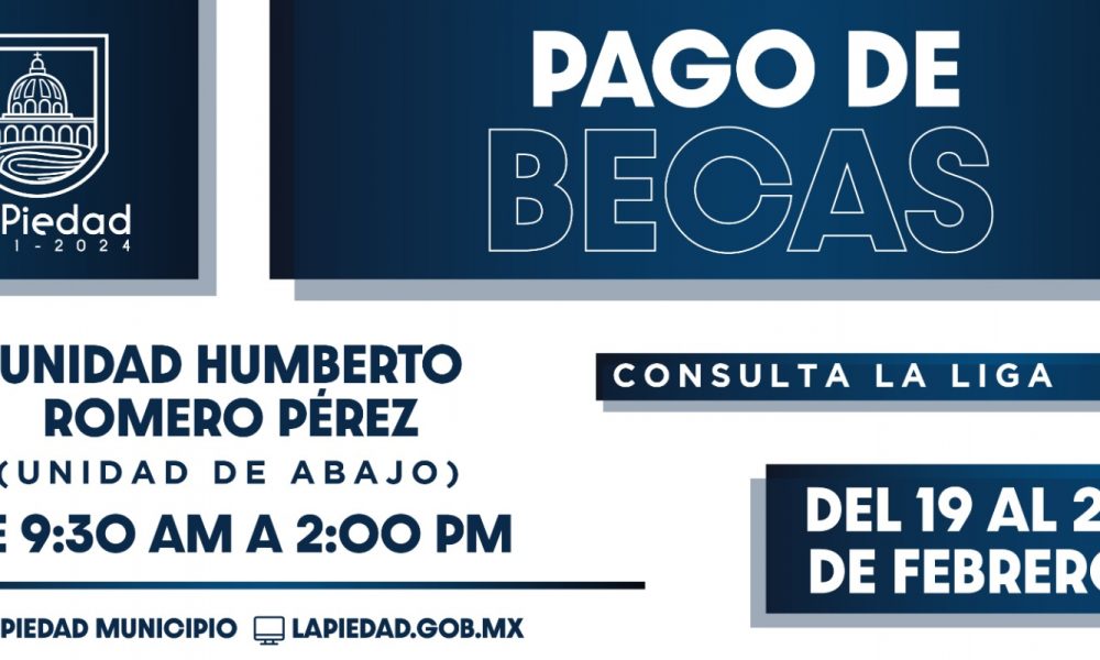 Con el objetivo de seguir impulsando la educación, se realizará el pago de becas municipales correspondientes al segundo periodo de noviembre y diciembre del ciclo escolar 2023-2024, en el Auditorio de la Unidad Deportiva Humberto Romero Pérez.