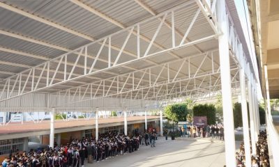 Más de 700 alumnos beneficiados en la E.S.T. No. 140 Se construye techumbre en el patio cívico...
