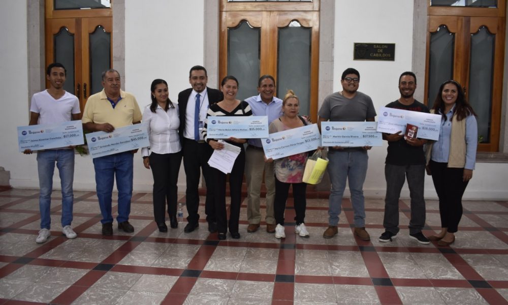 El Alcalde Juan José García, acompañado de personal de la Dirección de Desarrollo Económico y de Gobierno del estado, realizó la entrega de apoyos a los 6 beneficiarios del Programa Fondos Guanajuato el cual asciende a los 125 mil pesos.