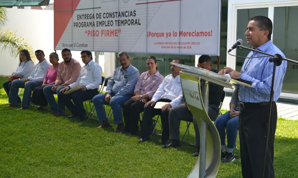 Para dar cumplimiento con las políticas públicas de generar bienestar social para los habitantes que viven en áreas con mayor vulnerabilidad, esta mañana el Presidente Municipal y el delegado federal de la Secretaría de Desarrollo Social (SEDESOL), Luis Arturo Gamboa Mendoza, entregaron las constancias de acreditación del programa Empleo temporal “piso firme” que se aplicó para este municipio.