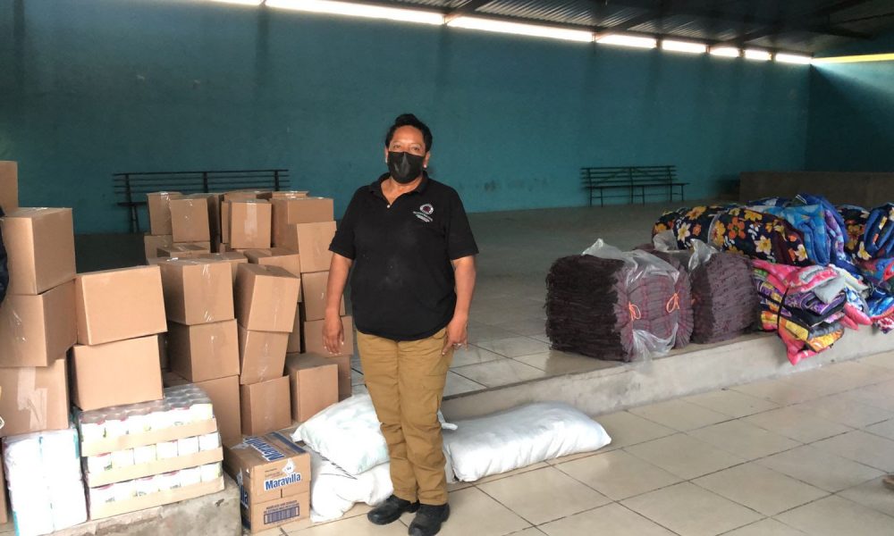 La funcionaria se trasladó a las localidades de Santiago Conguripo para distribuir 600 despensas, 150 colchonetas y 300 cobijas a los habitantes de dicha comunidad donde se habilitó un refugio temporal para atender a por lo menos 20 familias en riesgo.