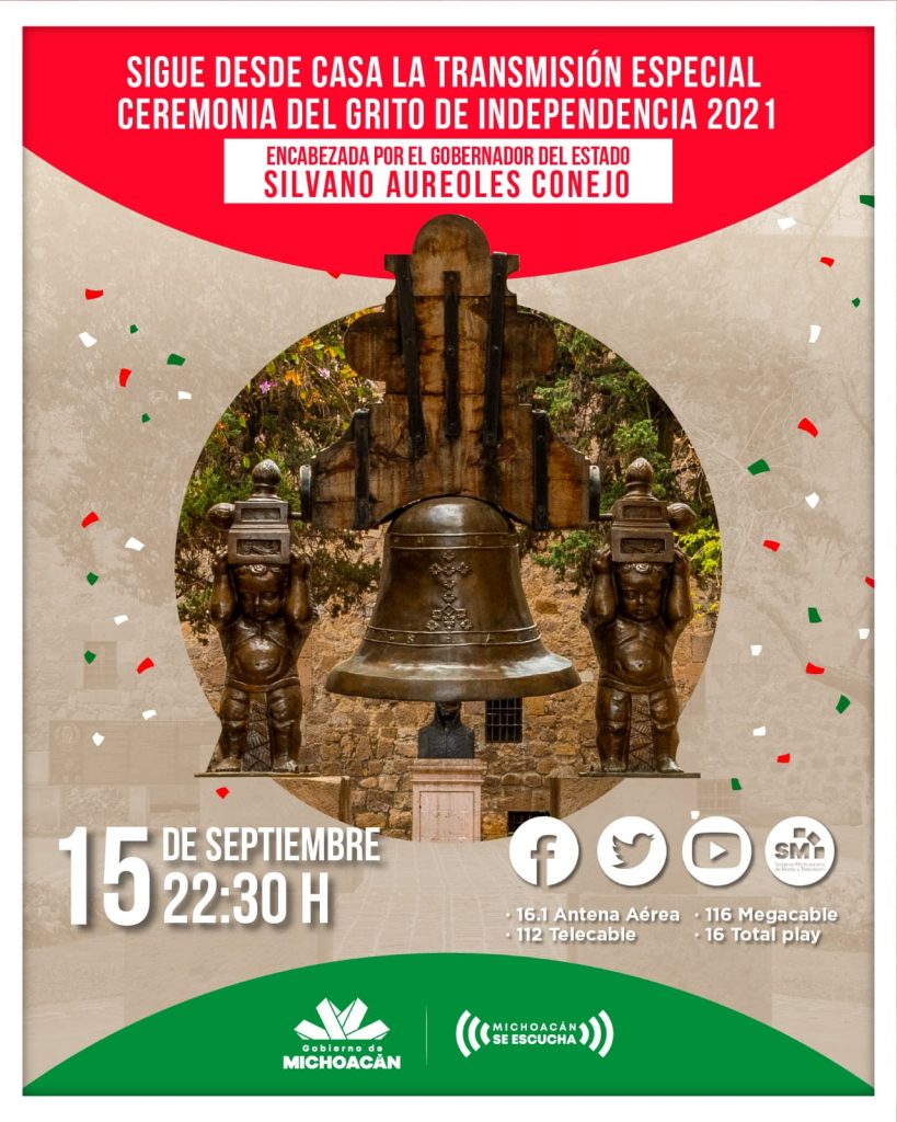 En atención al cuidado de la salud por el COVID-19, en esta ocasión los festejos patrios se realizarán a la distancia, con el objetivo de privilegiar la salud de las y los michoacanos.