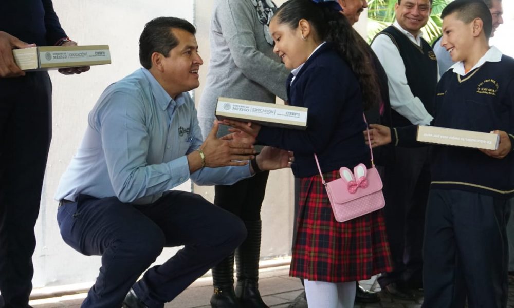 En un esfuerzo hecho entre autoridades municipales, el Estado y la Federación, esta mañana fueron entregados los materiales escolares que otorga la Secretaría de Educación a niños de primaria.