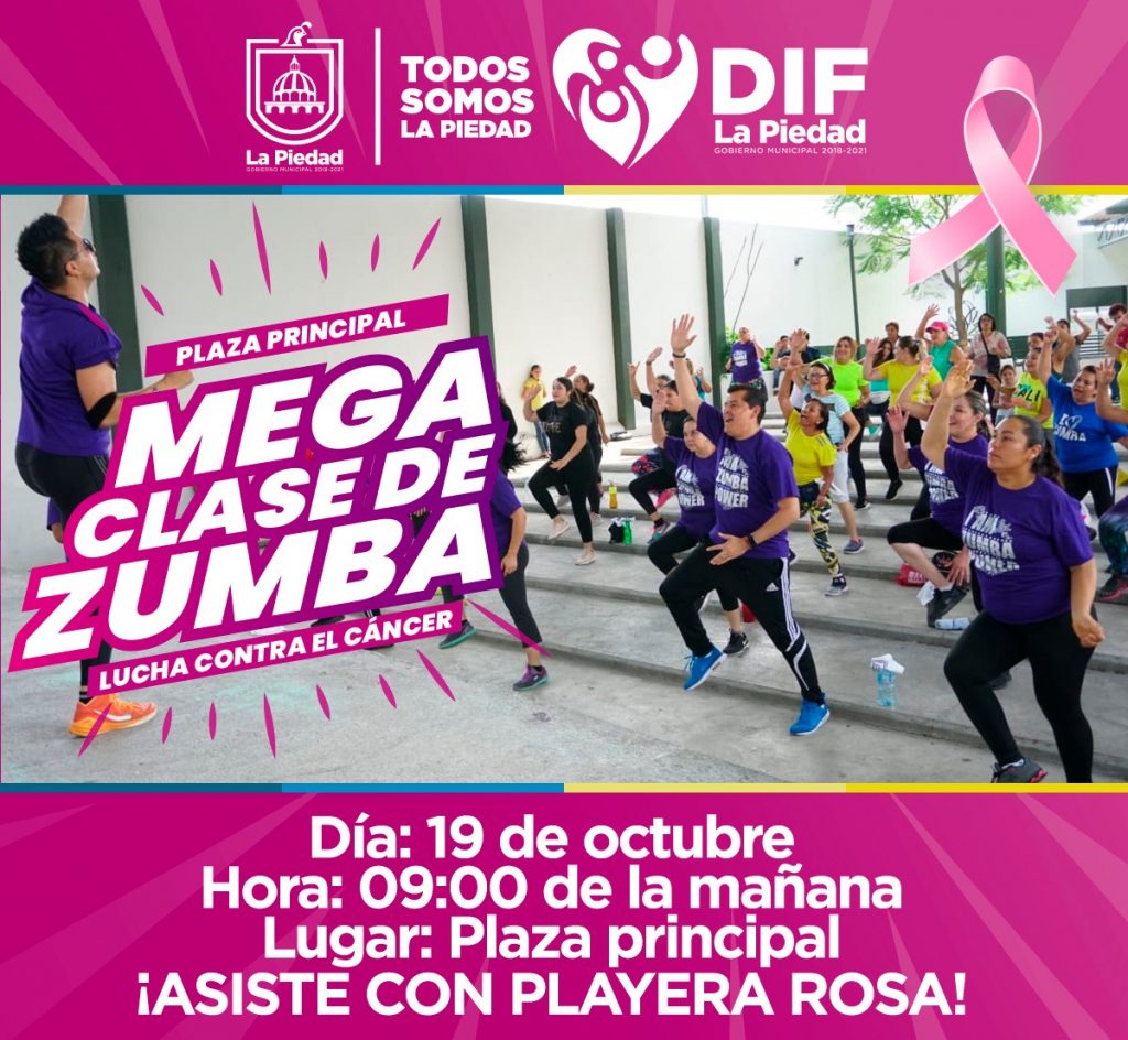 El Gobierno Municipal a través del Sistema para el Desarrollo Integral de la Familia (DIF), invita a la población a participar en la mega clase de zumba que se llevará a cabo el sábado 19 de octubre en la Plaza Principal.