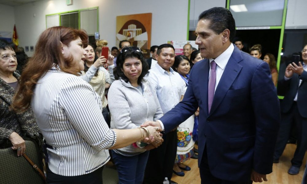 Arropado por líderes y familias completas de migrantes michoacanos congregados en la Casa Michoacán en esta ciudad californiana, y tras una serie de reuniones con autoridades consulares y locales, Silvano Aureoles dejó en claro que desde su trinchera y sin importar las fronteras geográficas, hará todo lo que esté a su alcance para defender los derechos de las y los paisanos, y llevar a tribunales internacionales cualquier caso de abuso o discriminación.