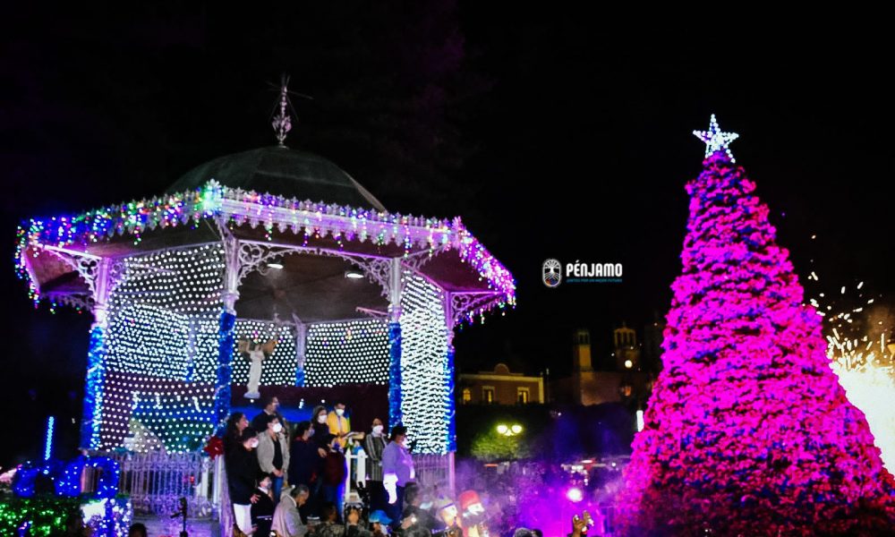 Las familias de Pénjamo y visitantes disfrutaron de una imagen navideña del municipio engalanado con el árbol navideño más bonito de la región, la presentación del Coro de la Universidad de Guanajuato, así como del túnel de luces y adornos colocados en diversas zonas del jardín.