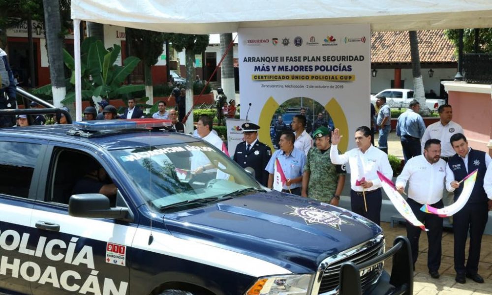 Durante el arranque de la II Fase del Plan de Seguridad Más y Mejores Policías en el municipio de Ziracuaretiro, Aureoles Conejo afirmó que las tareas de su administración están enfocadas en garantizar la seguridad de todas y todos los michoacanos.
