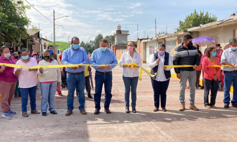 Así mismo, entregó la construcción de pavimento a base de concreto hidráulico en la calle Rosales, en la tenencia de Uripitio, generando con ello 20 empleos.