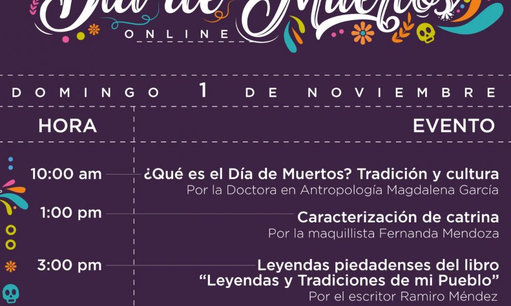 Para el primer evento programado será a las 10:00 horas con una plática dirigida por la doctora en antropología Magdalena García sobre “¿Qué es el Día de Muertos? Tradición y cultura”.