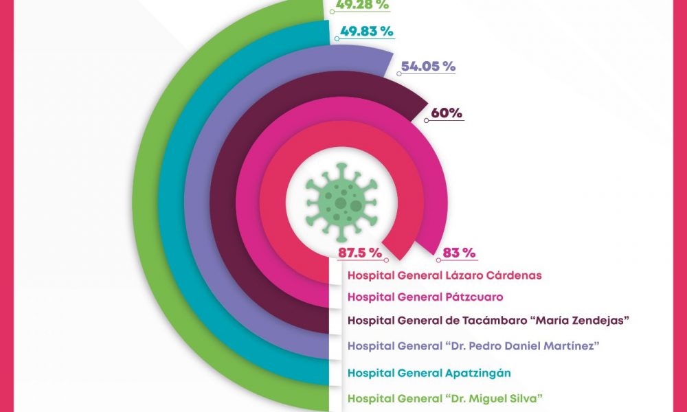 El Hospital General de Lázaro Cárdenas es el que encabeza la lista, con una ocupación de 87.5 por ciento, seguido por el de Pátzcuaro con 83; asimismo, el de Tacámbaro con 60, Uruapan 54.05 y Apatzingán con 49.83 puntos porcentuales.