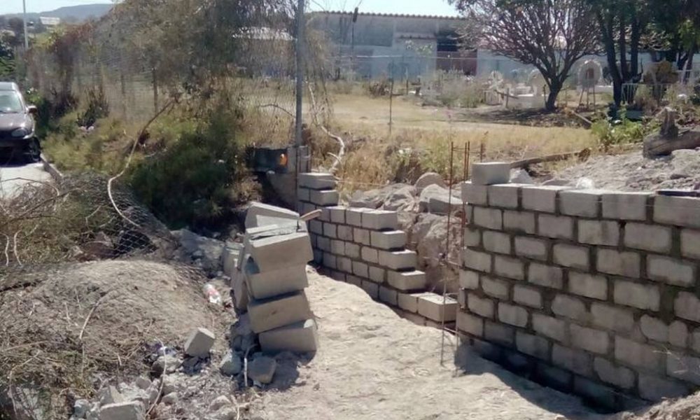 Para mayor tranquilidad de la población, el Gobierno local lleva a cabo trabajos de rehabilitación de la barda perimetral del panteón municipal con el fin de mantener orden y restricción de ingresos fuera del horario de apertura.