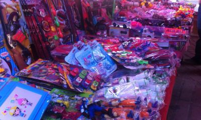 Los comerciantes de juguetes que se instalan en el parque “Marcos H. Pulido” con motivo de la...