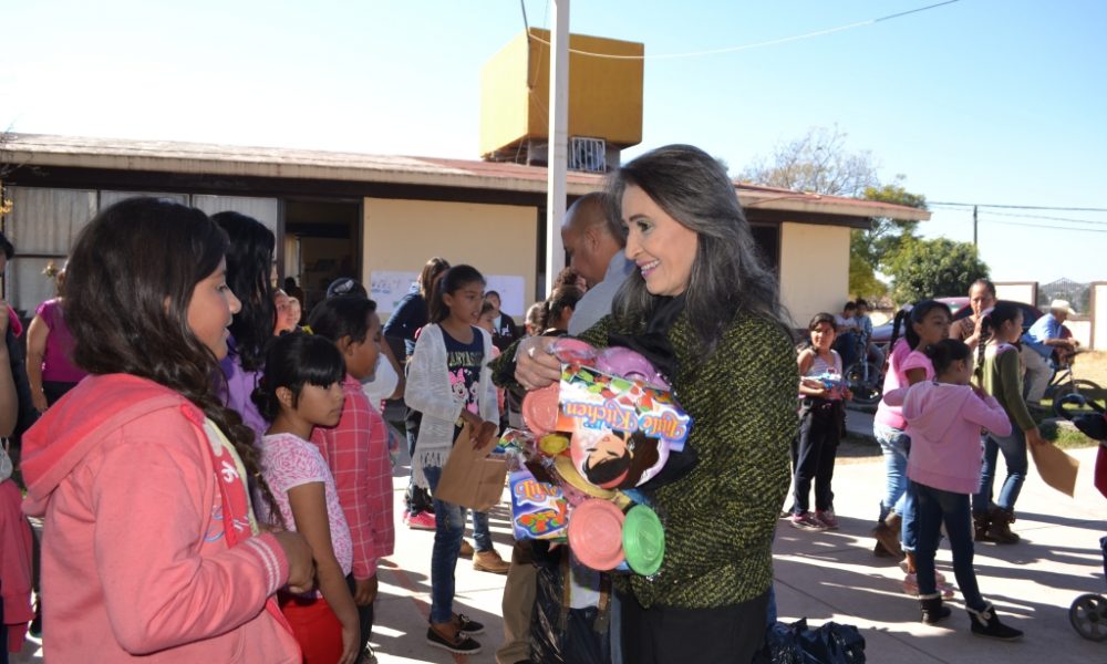 En esta ocasión la Presidenta del DIF municipal Ma. Socorro León visitó distintas comunidades para de manera personal hacer la entrega de juguetes a los niños de diferentes edades de las zonas rurales. En cada una de las poblaciones comentó que era un regalo de parte de las autoridades municipales, así como de la Diputada, esperando fueran de su agrado.